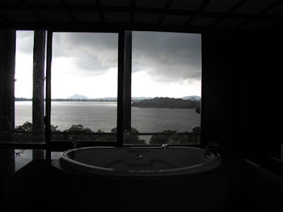 The rooms seem to be a natural extension of the verdant forest around as Hanuman langurs shriek and chatter, peering into our rooms from a ledge. The bathroom has a Jacuzzi facing a glass window with spectacular scenery outside and we voted it the best ‘bathroom with a view’.