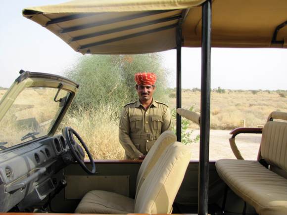 desert jeep with a butler and driver, through small villages or dhanis with mud houses, children