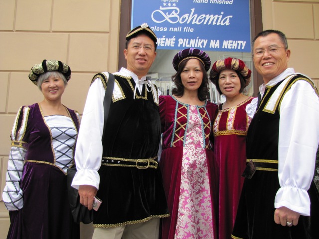 shops selling souvenirs and sweets as well as cafes. I met a group of Taiwanese tourists in hired medieval costumes who obligingly posed for me!