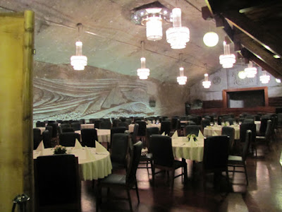 the ceiling were five chandeliers strung with hand cut crystals of salt. On the
