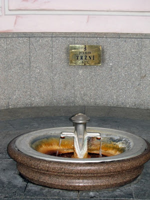 | The taps with the spring water- the board tells you the temperature of the water. |