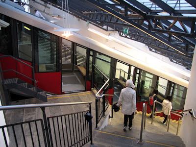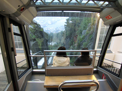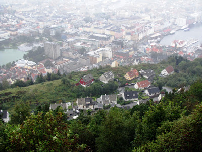 I always try to get a bird’s eye view of a place that I am visiting...The quaint Floibanen Funicular hauled us 1050 feet in a flat seven minutes for a spectacular view of the city- the sea and sky in a stellar combination, the tiny houses like Legoland and the harbor.