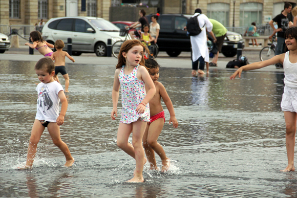 water jets that reflected the classic Place de La Bourse with kids and pets