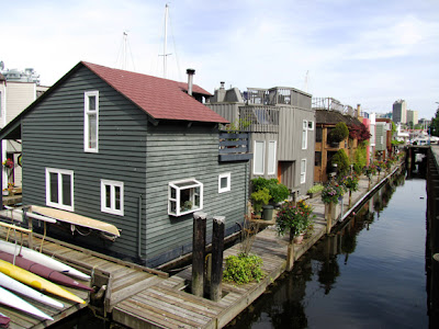 on the eastern edge of Granville Island. Bright colours and tourists gawking at your backyard- the thirty odd residents here sure have some quirky homes.